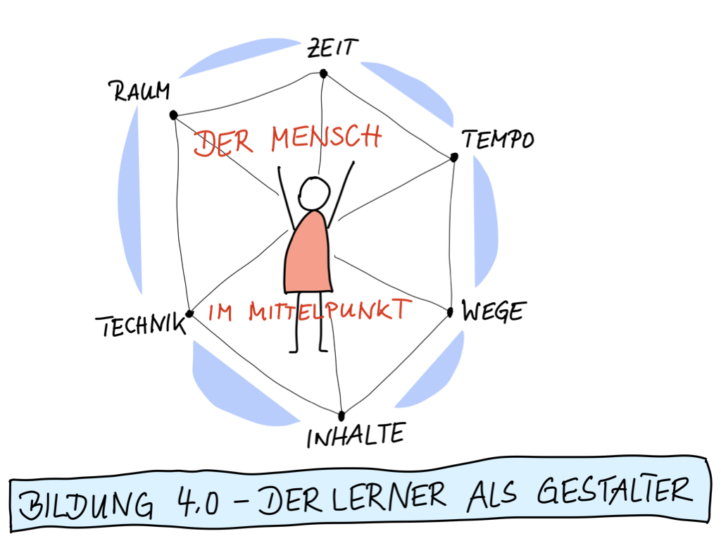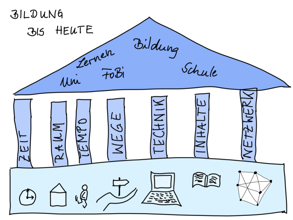 Ich wollte unterschiedliche Vorstellungen von Bildung gegenüber stellen. Wir lehren und lernen in einer Zeit der Transformation. Für mein Verständnis ist deshalb wichtig zu wissen, wo wir uns in diesem Transformationsprozess befinden. Mindestens genauso wichtig ist für die Bewegung im Transformationsprozess die Vision. Denn ein Ziel ist wichtig für die Orientierung.