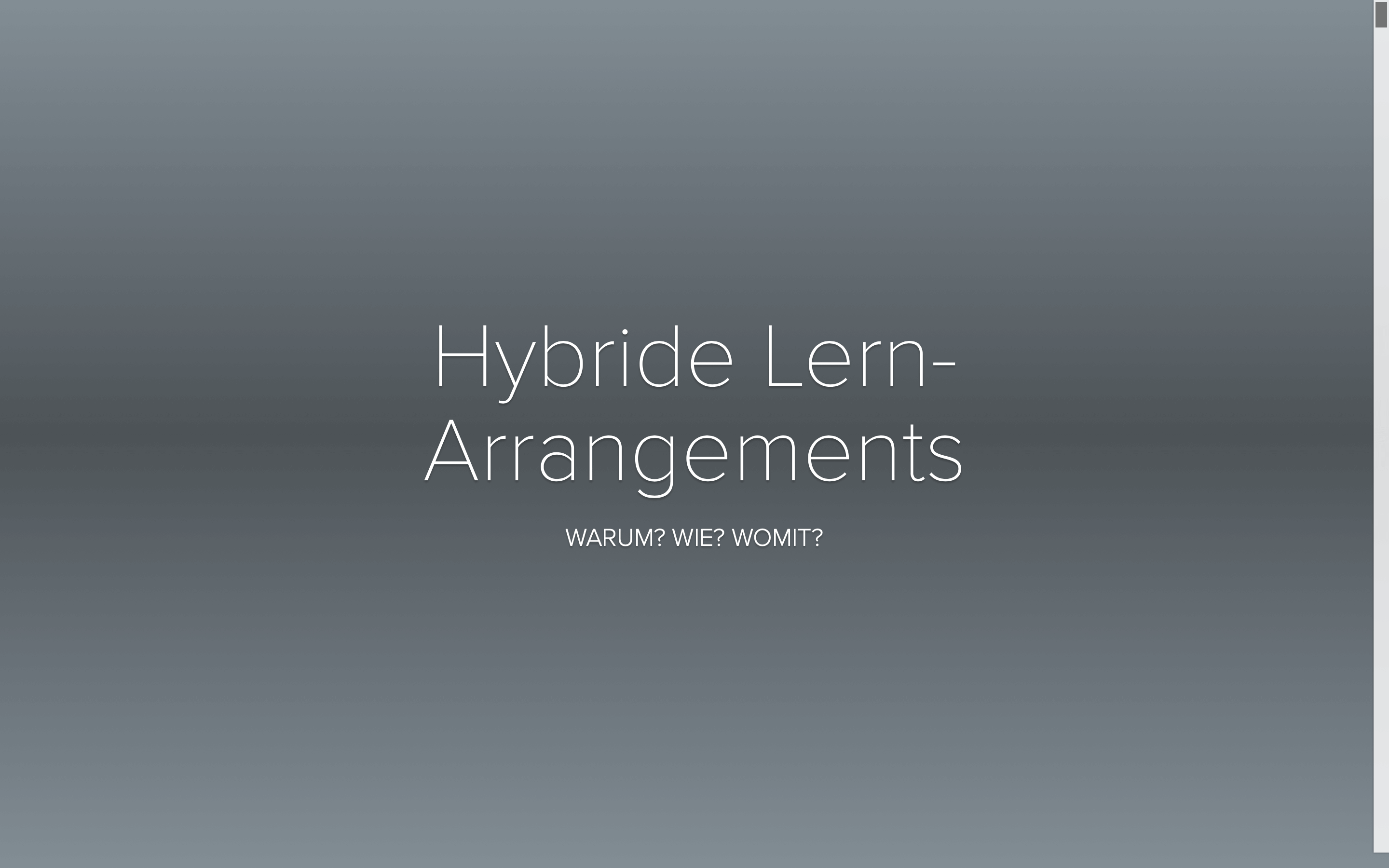 Hybrid meint die Kombination - Altes und Neues soll im Miteinander zu einer Weiterentwicklung führen. Meine Gedanken zu hybriden Lernarragements hatte ich schon vor einiger Zeit in einer Präsentation zusammengefasst. Aktuell sind sie immer noch. 😉