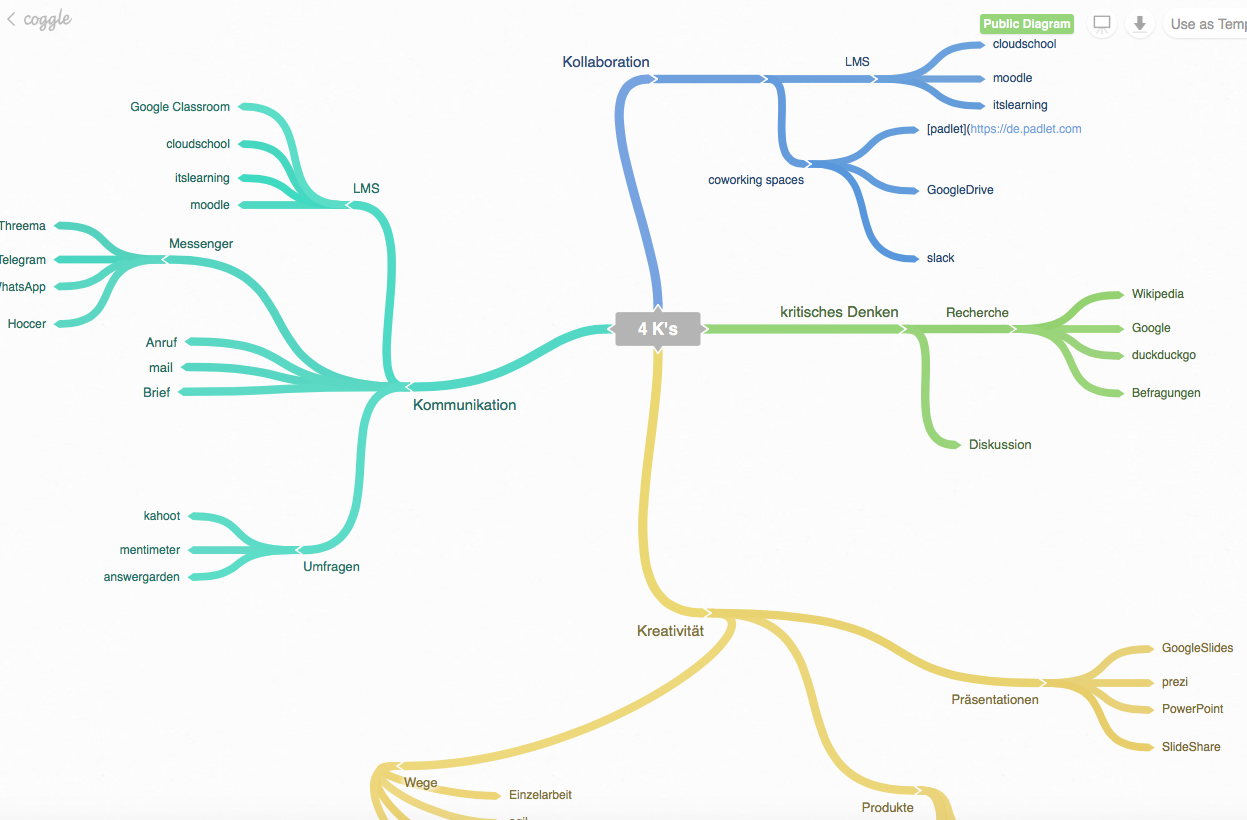 Mindmap - Möglichkeiten und Tools, die 4K's umzusetzen: