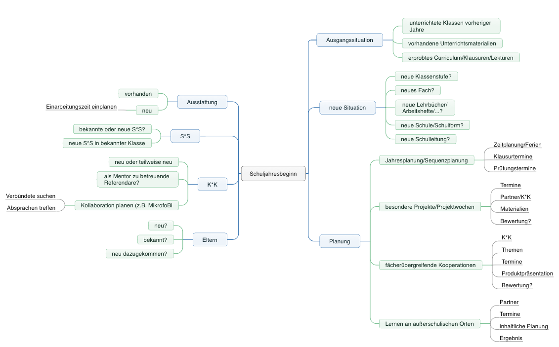 Für Lehrpersonen beginnt vor dem eigentlichen Start schon eine mehr oder weniger intensive Phase der Vorbereitung. An viele Sachen ist zu denken. Neue Dinge kommen hinzu, aber selbst bei Schulwechsel oder neuen KollegInnen bleiben doch bestimmte Abläufe und Aufgaben gleich und lassen sich aus der Erfahrung heraus schnell erledigen.