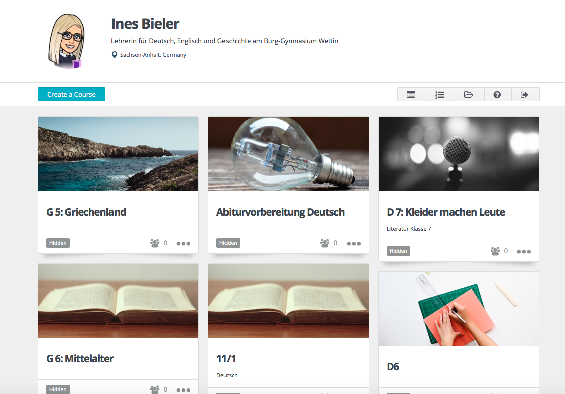 Nun kann ich in jedem Kurs verschiedene Stunden anlegen und diese einzeln, genau wie auch den gesamten Kurs, freischalten, d.h. für SchülerInnen sichtbar machen oder wieder "verstecken". Diese Funktion finde ich sehr praktisch. Nach Beendigung des Themas "verberge" ich den Kurs oder auch einzelne Stunden wieder. Dadurch bleibt für die Schüler*innen das Angebot übersichtlicher.